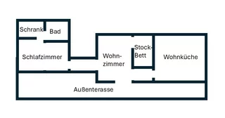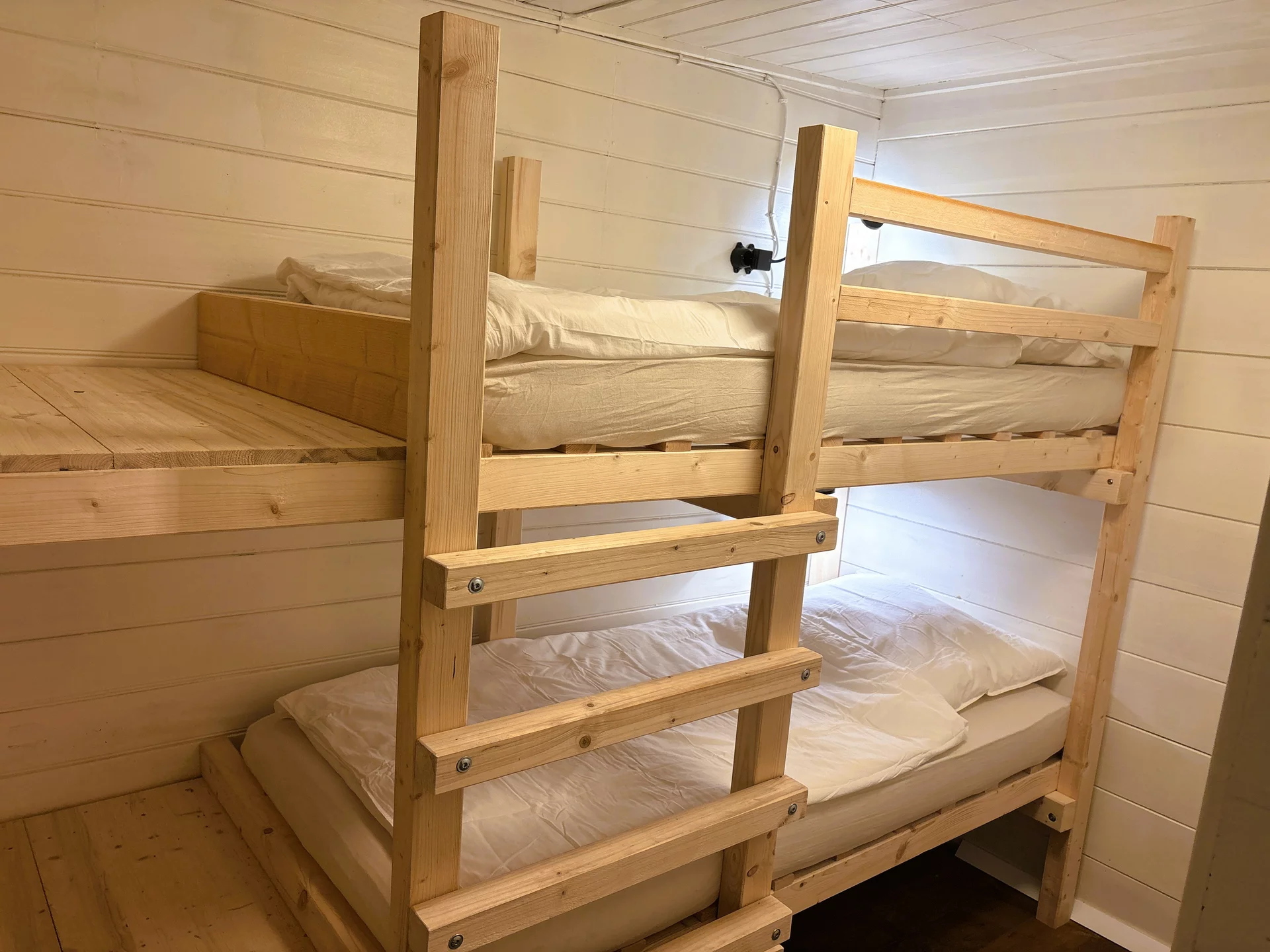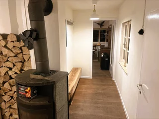 Die Hütte verfügt über bis zu sechs Schlafplätze, ein Bad sowie ein Wohnzimmer und eine Wohnküche. Die Schlafplätze verteilen sich auf drei separate Zimmer mit jeweils einem Doppelbett (groß), einem Doppelbett (Ausziehcouch) sowie einem Stockbett. Das Bad verfügt über eine Dusche mit Warmwasser. Geheizt wird die gesamte Hütte mit zwei Holzöfen, welche in der Wohnküche sowie im Wohnzimmer stehen. Das Bad ist aus komfortgründen zusätzlich separat (elektrisch) beheizbar. Die Hütte verfügt über WLAN, einen Fernseher sowie in der Küche über einen modernen Herd, Kühlschrank und eine Spülmaschine.